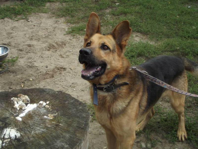 Dajmon ist noch nicht lange in unserem Partnertierheim (Stand 09.2015). Wir hoffen sehr, dass er nicht, wie so viele Schäferhunde, viele Jahre seines Lebens dort verbringen muss. Er ist ein bewegungsfreudiger Rüde, der viel körperliche Auslastung und Beschäftigung benötigt, um sich wirklich wohl zu fühlen. Natürlich kann er in unserem Partnertierheim nicht ausreichend ausgelastet werden, sodass er bei Langeweile versucht wegzulaufen. Mit etwas Übung lernt er aber sicher irgendwann, dass es in der Nähe der Menschen sehr schön ist. Für Dajmon suchen wir standfeste Menschen, die Lust dazu haben, eine Hundeschule zu besuchen und ihm die Leinenführigkeit u.ä. beizubringen sowie zu lernen, wie man ihn bei Begegnungen mit Artgenossen am besten händelt. Diese kann Dajmon leider nicht leiden. Er ist ein "Rohdiamant", der mit Geduld und liebevoller Konsequenz sicher ein toller Begleiter werden wird. Dajmon zeigt sich stets sehr brav und verschmust und freut sich riesig, wenn man ihm ein paar Minuten Aufmerksamkeit schenkt.